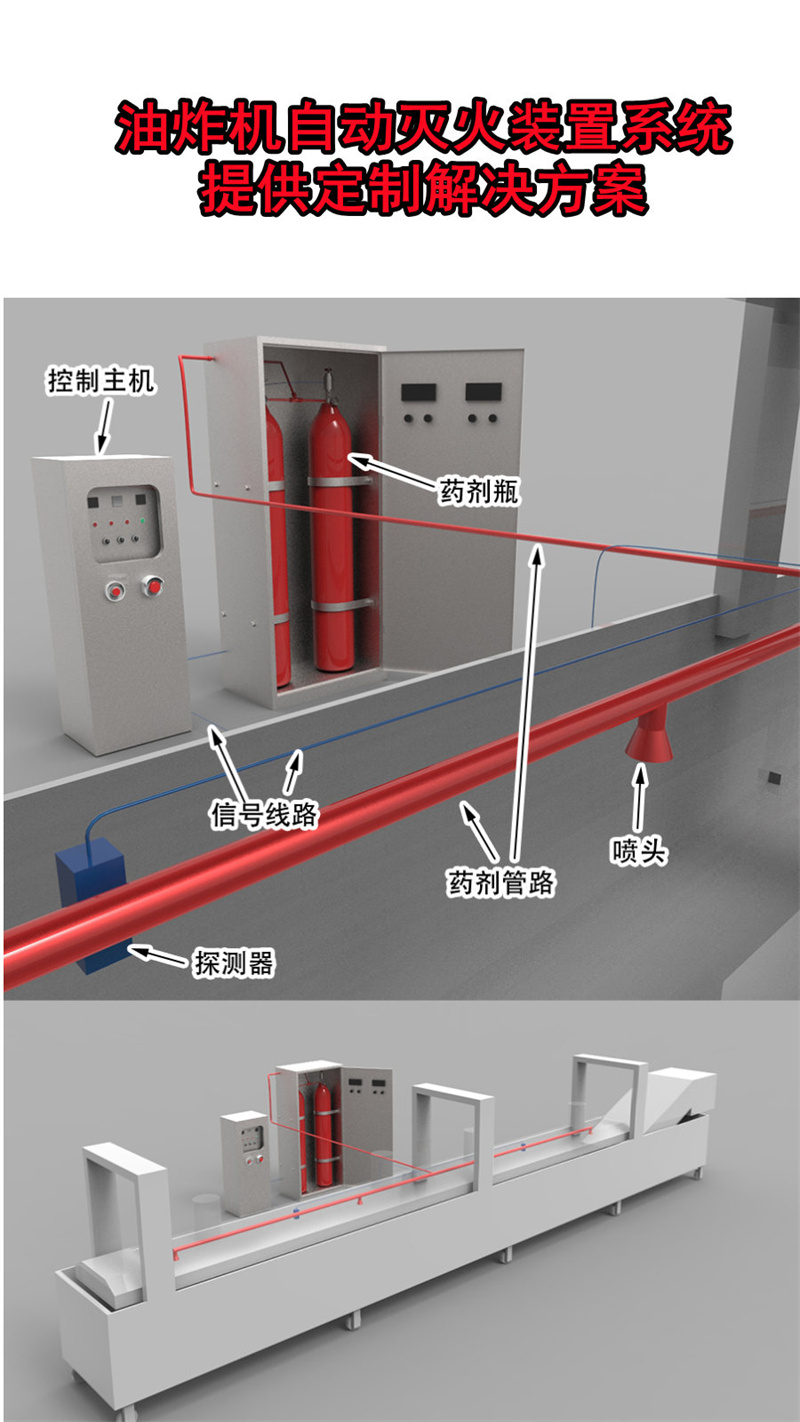 山东油炸机灭火设备,油炸机灭火系统,油炸机自动灭火装置定制厂家,广泛应用于山东潍坊、淄博、烟台、青岛、临沂、日照、滨州等冷藏食品加工厂,油炸机二氧化碳自动灭火系统厂家。